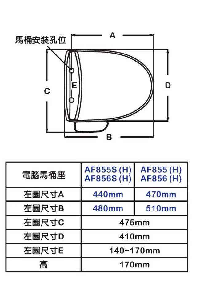 【44CM】AF855S為44CM圓形馬桶之使用 /【47CM】AF855為47CM圓形馬桶之使用。