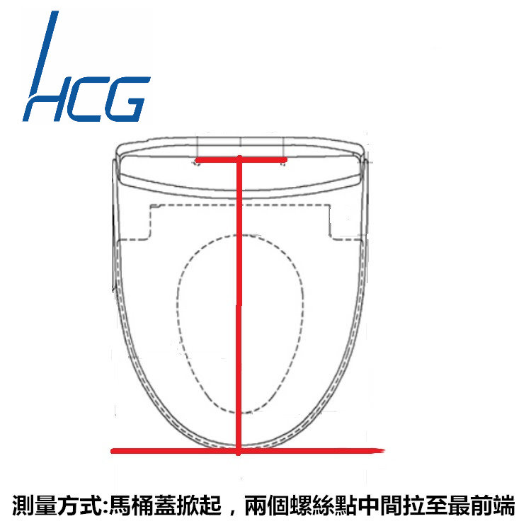 ◎如何確認家中馬桶尺寸,請將家中馬桶蓋掀起來兩個螺絲中間點拉到馬桶外圍最前端