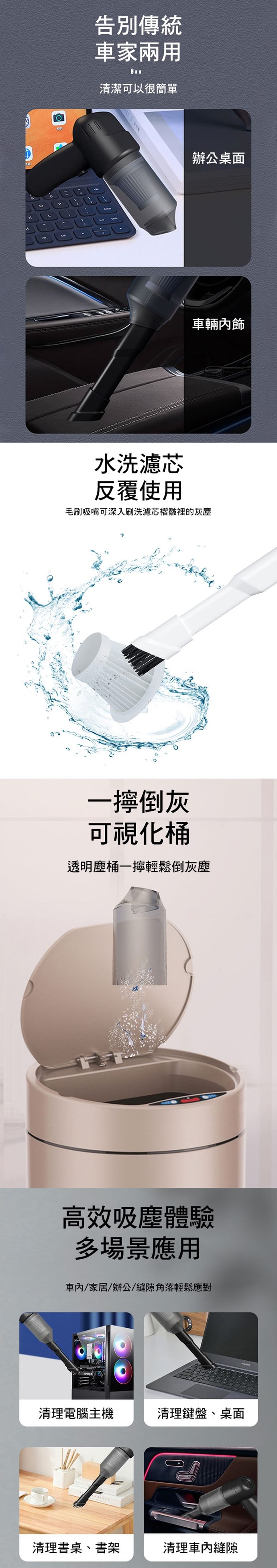 【U-like】小型家車兩用手持吸塵器 車載吸塵器 家用吸塵器 USB充電 吸塵器 清潔器 打掃器 家用 廚房 乾濕分離 車用