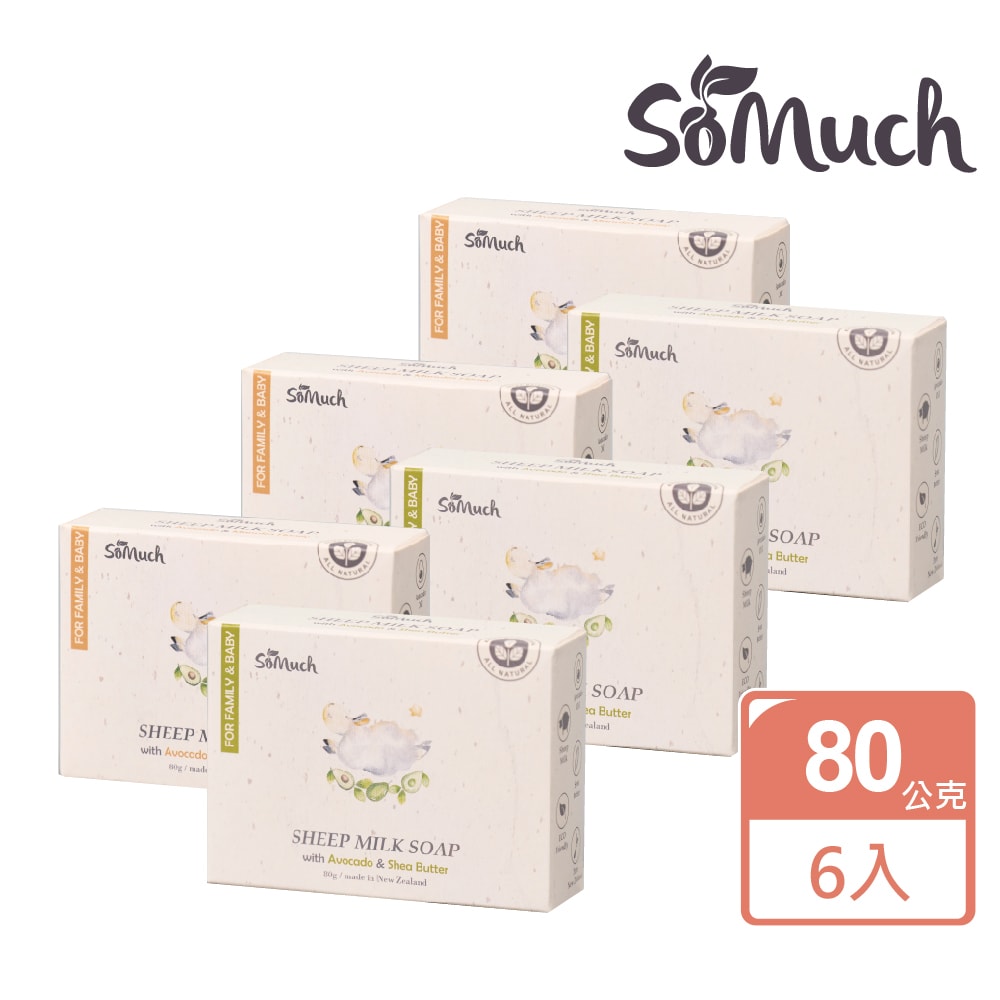 2.商品品名:Somuch紐西蘭綿羊乳護膚皂80gm任選6(酪梨麥蘆卡蜂蜜3+/梨乳油木果3)