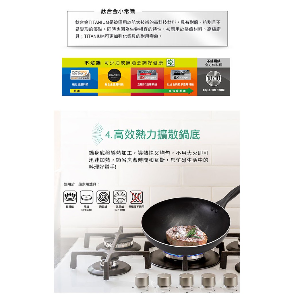 ◆材質:鋁合金、TITANIUM鈦合金強化塗層(PTFE,耐熱溫度250°C)、電木把手
