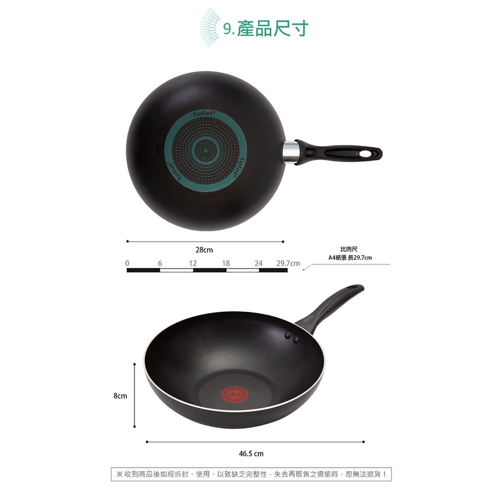 ◆尺寸:鍋具口徑28cm/鍋底直徑14cm/含鍋把總長46.5cm/鍋深8cm