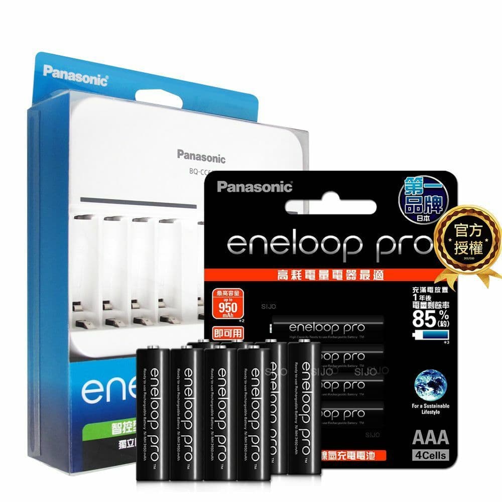 【Panasonic 國際牌】 智控型8槽急速充電器+ 黑鑽款eneloop PRO 950mAh 低自放4號充電電池(8顆入)