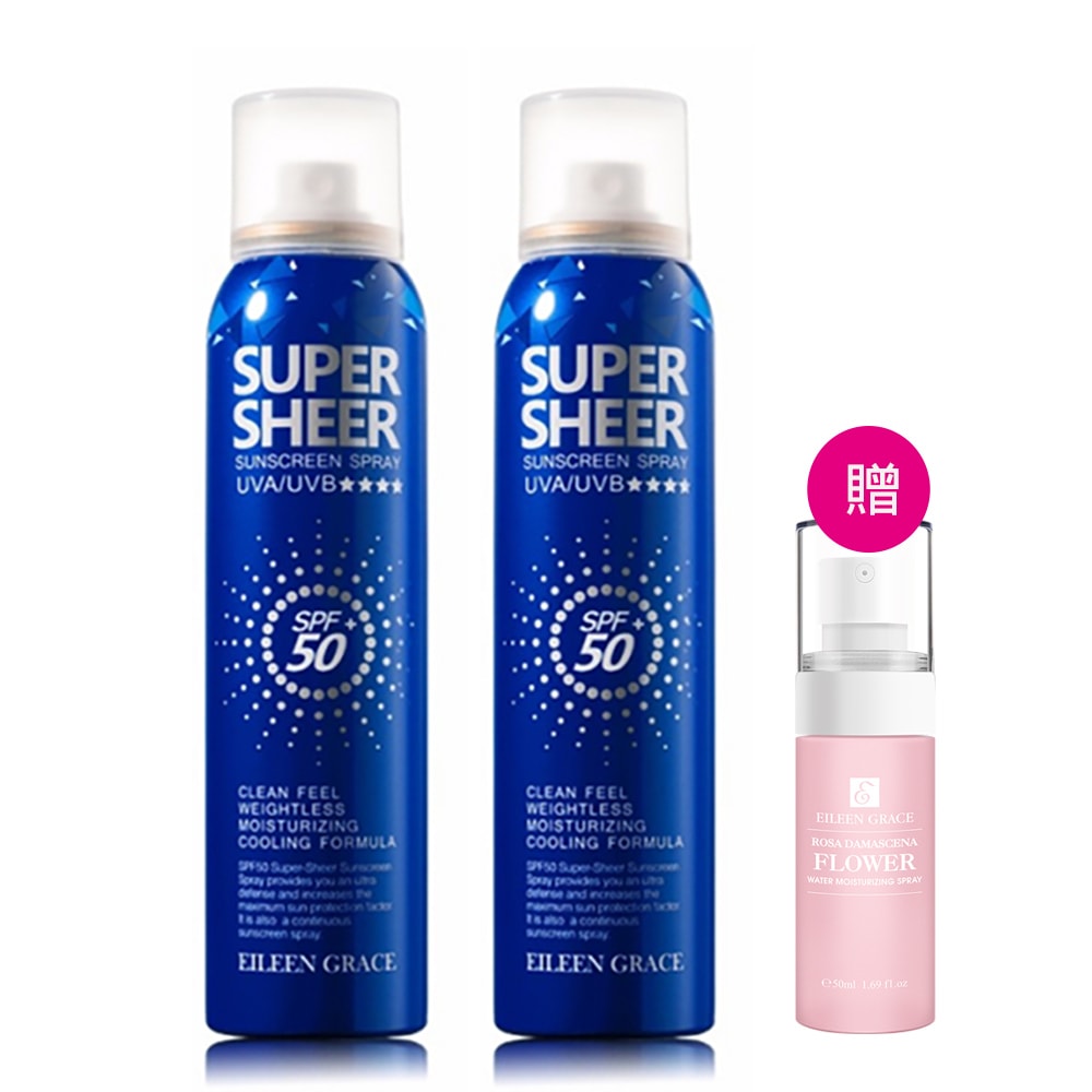 【EILEEN GRACE 妍霓絲】 SPF50清爽沁涼防曬噴霧180mlX2+贈玫瑰保濕噴霧50mlX1