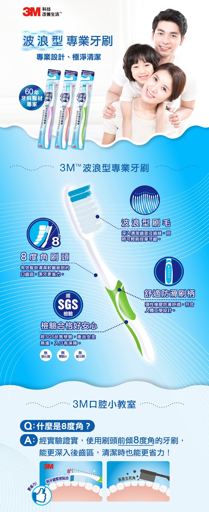 ◆波浪型刷毛(平毛),深入清潔齒面及齒縫,同時可輕刷按摩牙齦