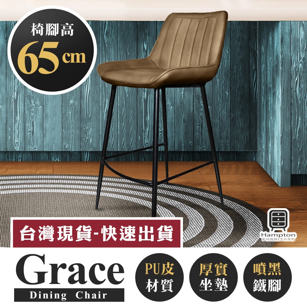 】 葛瑞斯皮面吧台椅-卡布奇諾-座高65公分