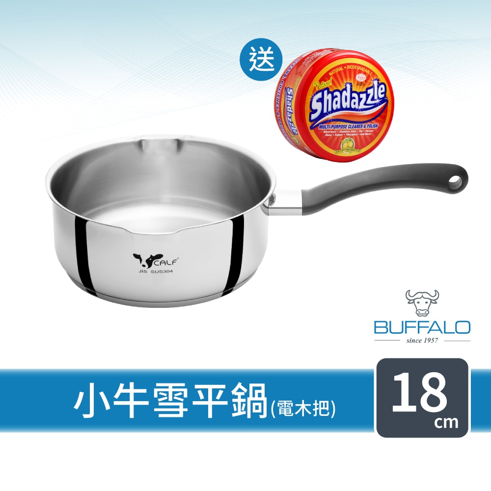 【BUFFALO 牛頭牌】 小牛不鏽鋼單柄湯鍋雪平鍋18cm電木柄(304不鏽鋼/泡麵鍋/露營鍋/不銹鋼鍋子)