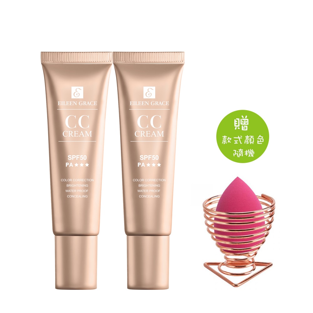 【EILEEN GRACE 妍霓絲】 晶靈光感CC霜30MLX2贈美妝蛋+收納架(隨機)