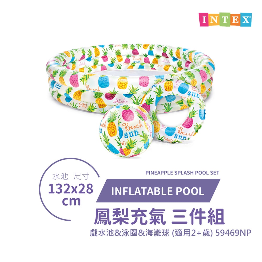 INTEX132cm泳池-鳳梨充氣三件組(2+)