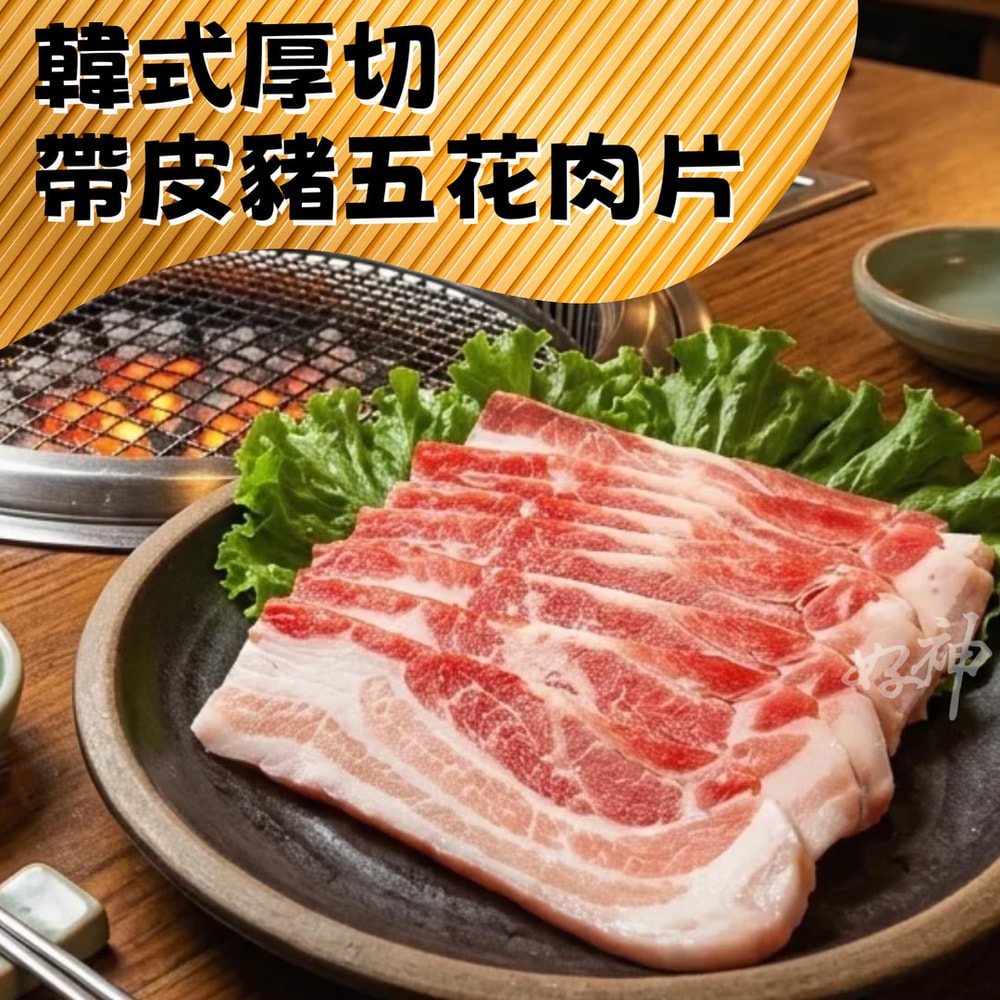 商品品名:韓式厚切三層帶皮豬五花肉片