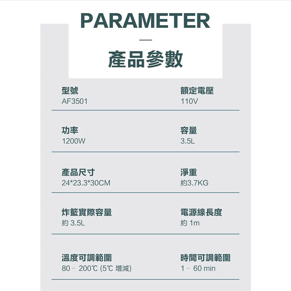 ☆ 商品名稱:3.5公升金鑽氣炸鍋-綠金香