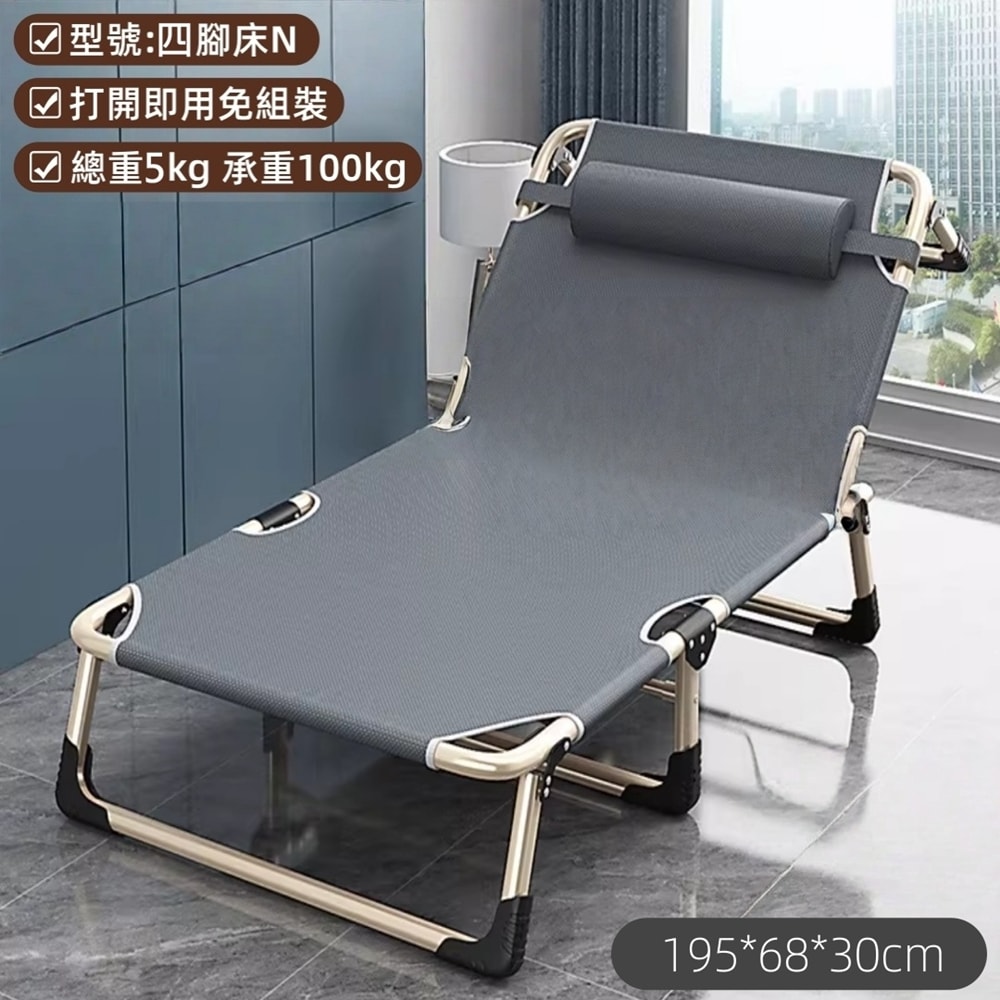 午休折疊床四腳 附頭枕免組裝/全平躺180度/快速折疊/鋼管支撐/頭枕填充 摺疊椅/躺椅/折疊床