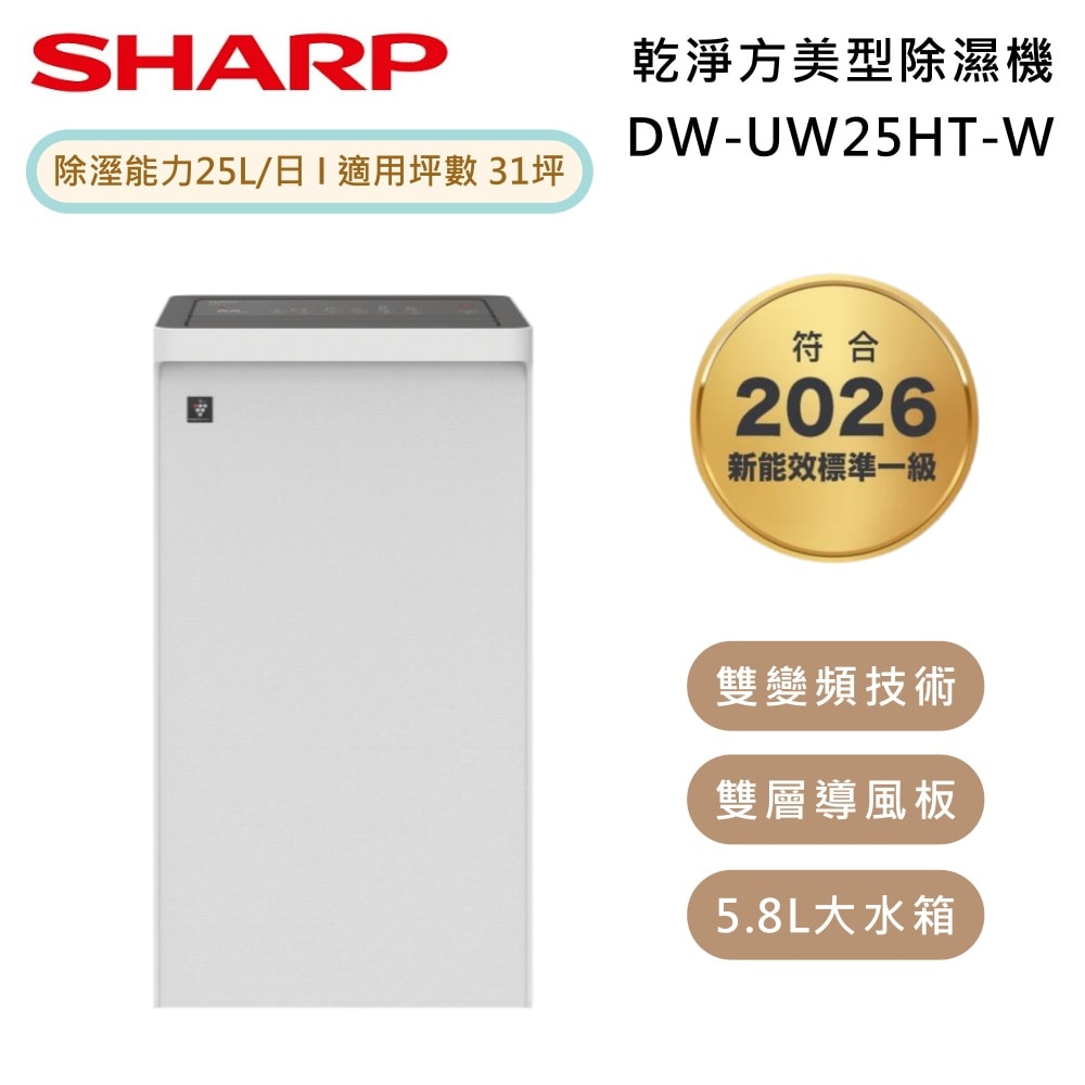 【SHARP 夏普】 25L DW-UW25HT-W 乾淨方美型除濕機 雙變頻技術 一級效能